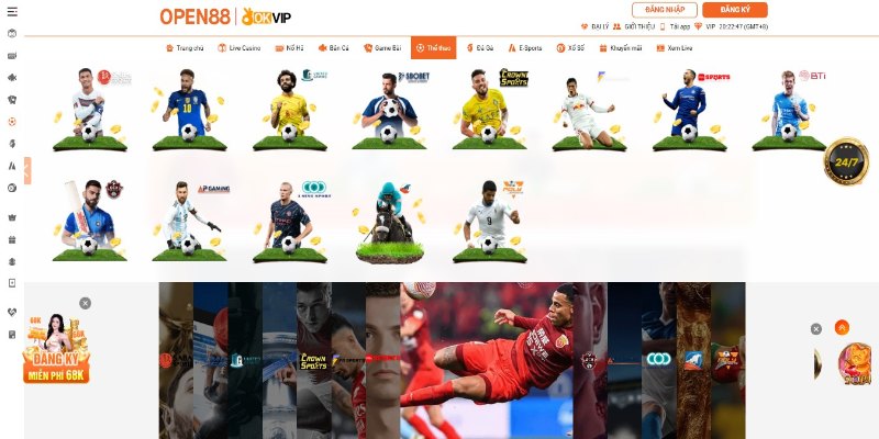 Thể thao OPEN88 hiện đang là lựa chọn hàng đầu của cộng đồng người chơi yêu thích cá cược thể thao trực tuyến trong giai đoạn bùng nổ giải trí số hiện nay. Sảnh game được xây dựng như một không gian trải nghiệm toàn diện cho phép người chơi có thể theo dõi trận đấu, phân tích kèo và đưa ra quyết định dựa trên dữ liệu cập nhật liên tục theo thời gian thực.